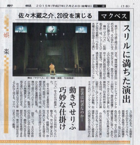 本日の朝日新聞夕刊の劇評でございます。