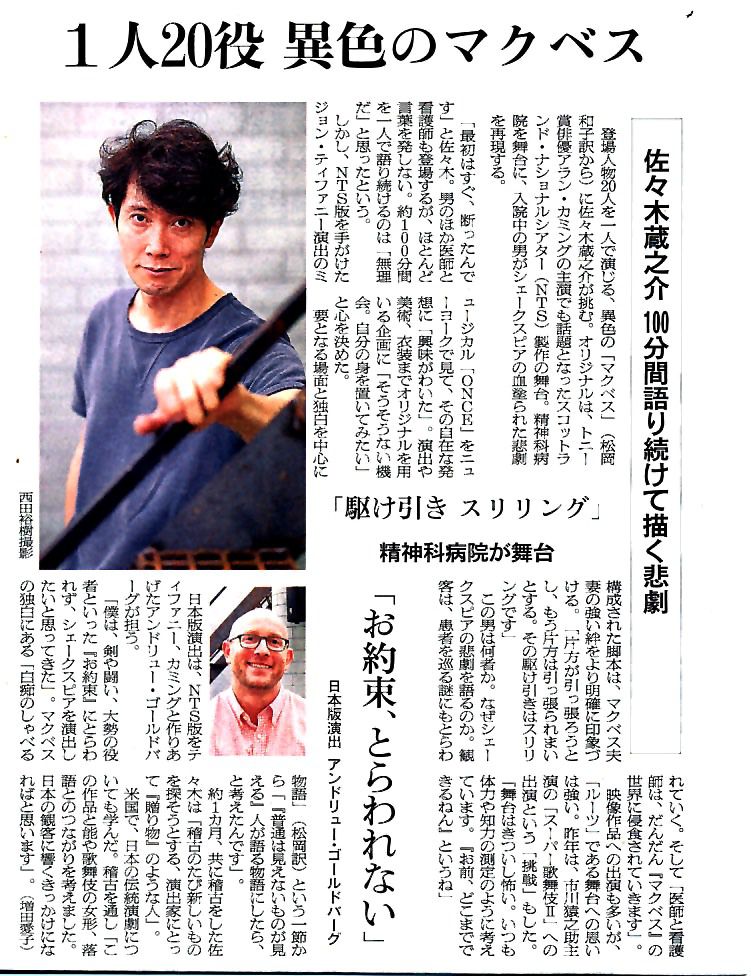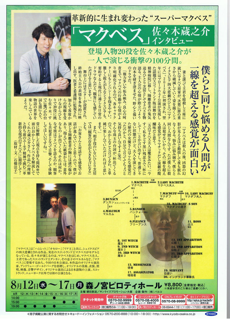 劇場で配布されるフライヤーの中にマクベスのインタビュー記事がありましたのでおすそ分けです。