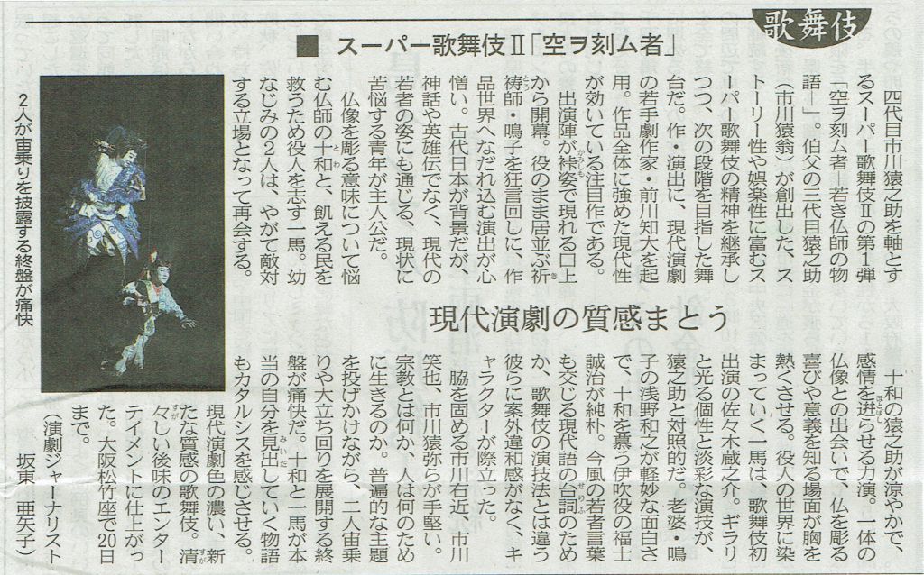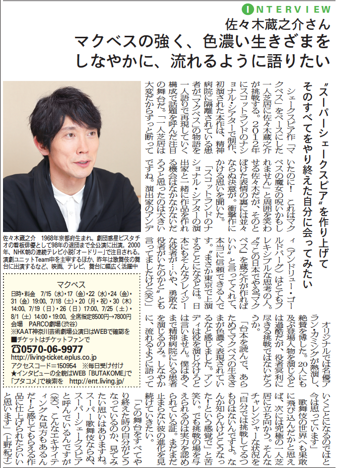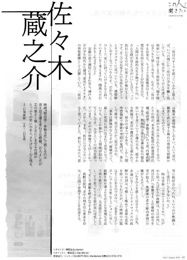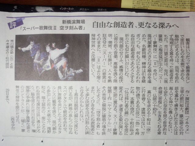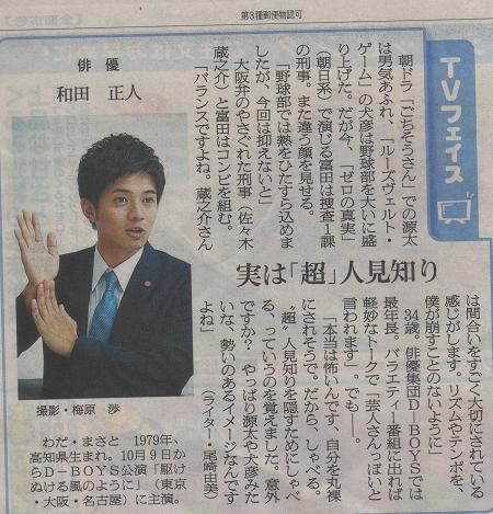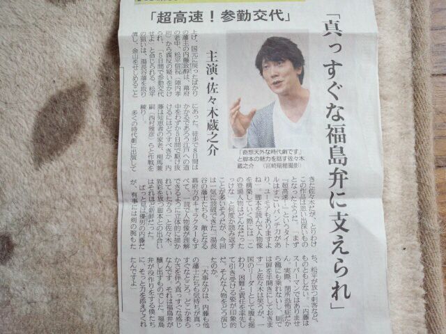 インタビュアーの石飛さんがテレビドラマでは「鹿男」の蔵之介さんが印象深くて「シリアスとコメディーのどちらにも分類しにくい役柄で断然個性が生きる」と評して下さっているのもうれしいです。
