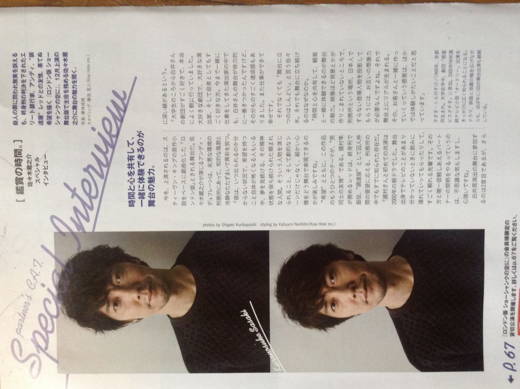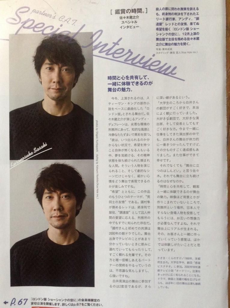 その宣伝で、情報誌「partner」に、蔵之介さんのインタビューが載っていました。